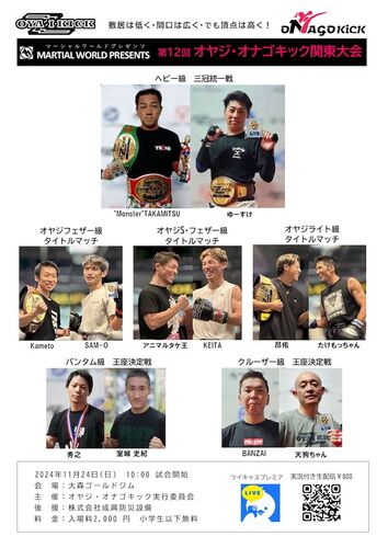 43試合目に出場予定だった、ネコパンデラックス選手が怪我の為出場キャンセルとなりました。 二試合する予定だったあっくん選手が1試合となりました。 全試合数71試合となっております。 ご確認お願い致します。 そして、 オヤジキック初のベビー級三冠統一…